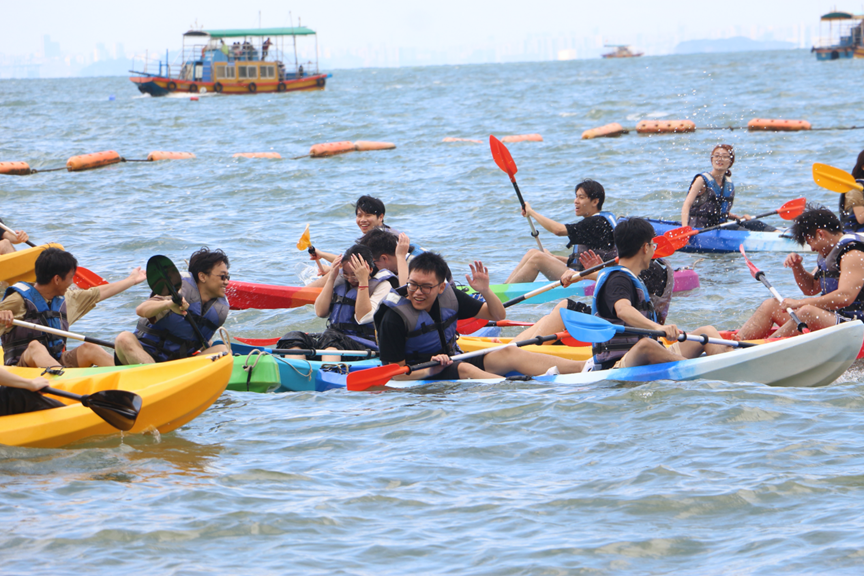第二天早晨,同学们热情不减,体验了皮划艇的合作项目。皮划艇项目进一步增强了同学们的合作意识,强健体魄的同时也帮助同学们释放压力,舒缓身心。