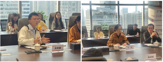 活动在广州市天河区高德置地广场F座19楼的会议室举行。万联证券党委副书记梁伟健与广外金融学院院长展凯教授分别致辞,强调了此次交流对学生职业发展与公司品牌提升的重要意义。在随后的环节中,万联证券的多位负责人分别分享了各自的工作领域与创新举措:客群服务部负责人陈然介绍了当前的市场概况并阐述了公司如何通过深入的市场调研和客户需求分析,优化服务流程,提高客户满意度,保持市场竞争力;首席信息官陈卓权和信息技术中心科技金融部经理胡利安分享了万联证券如何运用大数据、人工智能和区块链等前沿技术,提升金融服务的效率与安全性,助力公司在风险管理领域的突破;财富金融产品部高级经理邓嘉田讲解了个性化财富规划的意义,并详细介绍了公司财富管理业务的产品体系和服务内容;人力资源部副总监谭绚分享了万联证券的内部人才培养计划,讲述了公司如何通过培训、职业发展规划和激励机制,培养优秀的金融人才。此外,广外金融学院师生们也分享了他们的学术研究方向与职业发展期待,双方就校企合作模式展开了深入讨论。