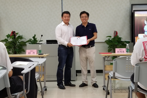 易行健为胡芃先生颁发证书