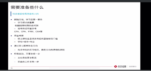 分享会第一阶段,周锋校友从自身经历出发,给同学们讲述了证券公司的五大基本架构、主要业务模式、行业发展前景等,对证券行业做了全面细致的介绍,并着重介绍了如何才能进入证券公司、进入证券公司应做好哪些准备。