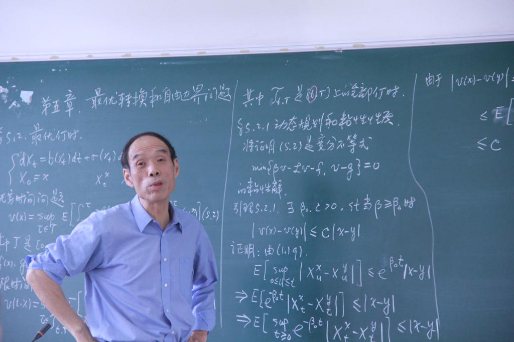 易法槐教授在本讲中讲授了Huygen Pham著“Continuous-timeStochasticControl and Optimization with Financial Applications”第五章。他主要介绍了最优转换和自由边界问题。他着重探讨了其中的两个问题,分别是无穷时间问题和变分不等式问题。他证明了无穷时间等式为变分不等式,并且对微分方程的解的种类进行进一步的扩展。本次讲座得到我院师生的积极响应。讲座完毕后,易法槐教授与师生交流探讨了相关问题。