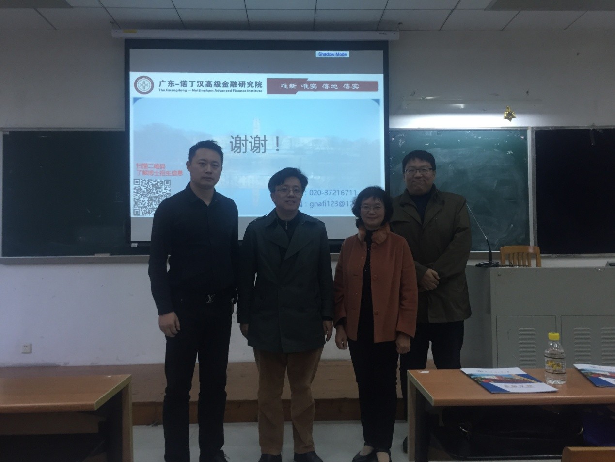 本网讯12月21日(周四)下午,广东-诺丁汉高级金融研究院院长,广东省本科高校金融学类专业教学指导委员会副主任委员,高级经济师李丹儿做客我院金融精英论坛第十一讲,在南校区教学楼E 座104室向我院师生做了“金融科技发展与我国金融业的未来”的主题演讲。我院易行健院长、张浩老师、陈健老师张轶老师出席本次活动。讲座由张轶主持。