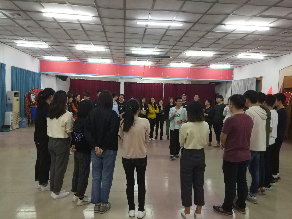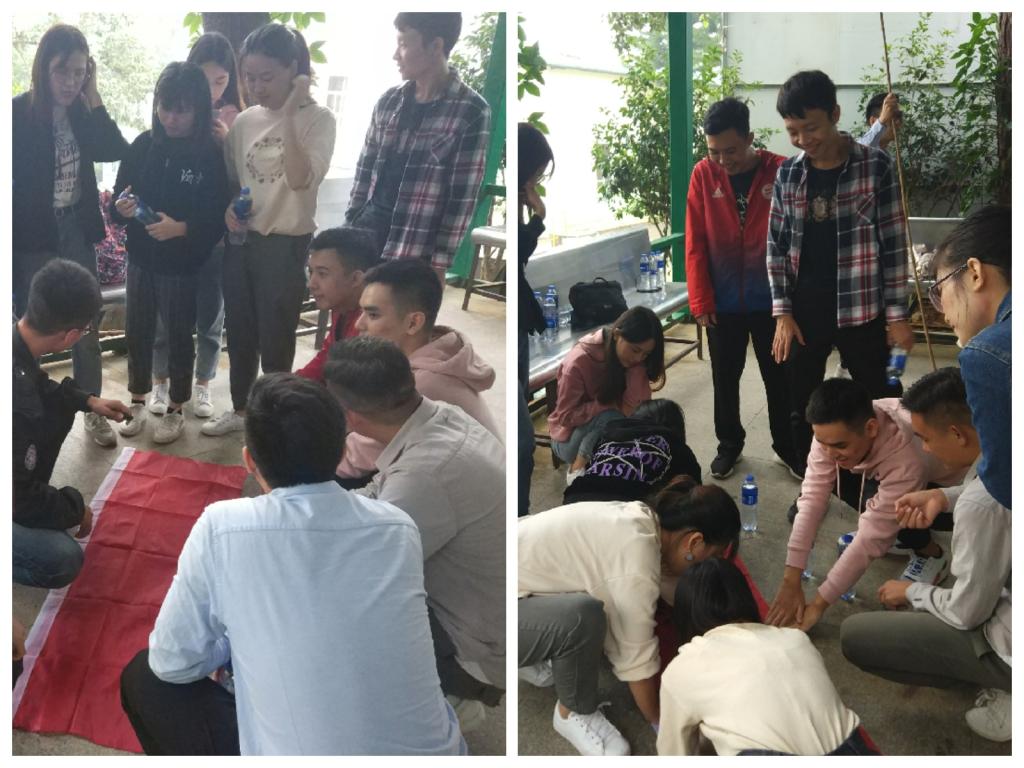 午餐后,大家开始了下午的活动。由于下雨,原定的室外活动改为室内活动。在教练的带领下,进行第一场游戏——“指令行动”。这一活动有效地赶走同学们午后慵懒的睡意,使同学们的注意力更加集中。游戏有输赢,最后淘汰的组将接受惩罚:全组同学围成圈拉着左右同学的耳朵一起下蹲。通过第一场游戏,很好地激发了团队凝聚力,强化了同学们的责任意识。