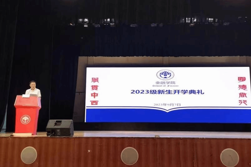9月7日晚,广东外语外贸大学金融学院2023级新生开学典礼在大学城校区大会堂举行,2023级全体本科和研究生新生参加典礼。金融学院院长展凯、金融学院党委书记徐昶斌、副院长杨菁菁、副院长张浩、副院长邓超、金融工程系主任梁裕珩、保险系主任丁宇刚和全体辅导员出席典礼。典礼由金融学院党委副书记张清达主持。